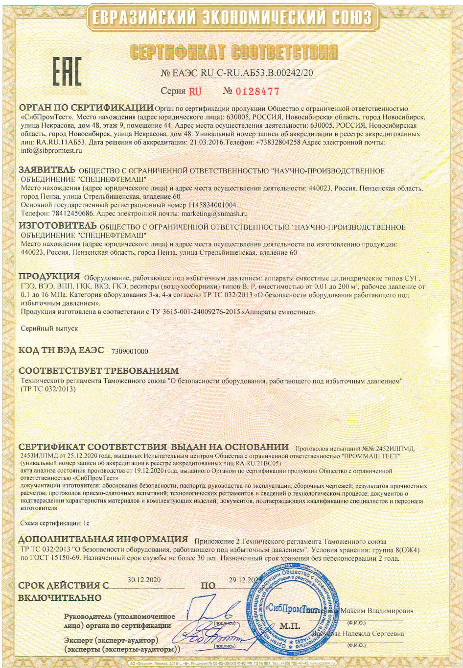 ООО «НПО «Спецнефтемаш» – официальный завод-изготовитель резервуаров для производства, хранения/фильтрации, использования различных материалов (нефтепродукты, газы). Предлагаем полное сопровождение проекта от расчета потребности до разработки проектной документации, изготовления конструкций, их доставки, установки.